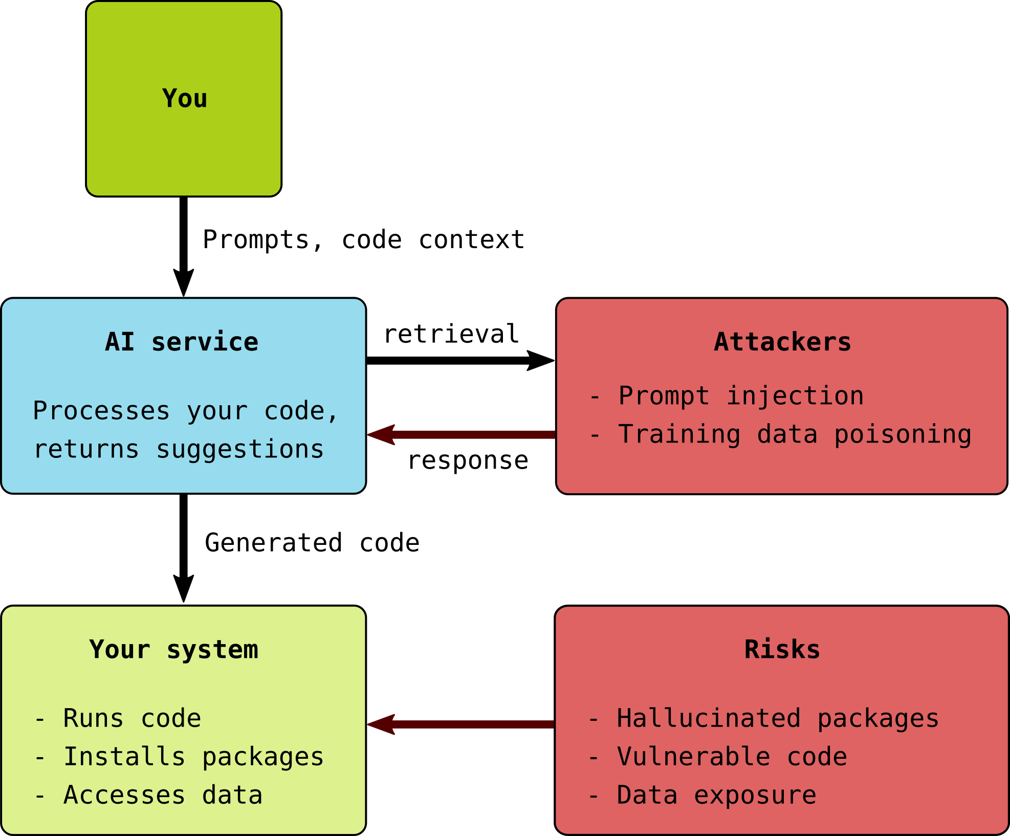 AI coding assistants introduce new attack surfaces to software development. Understanding these risks is essential for responsible use.