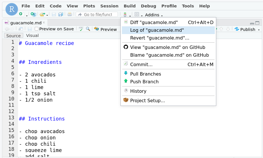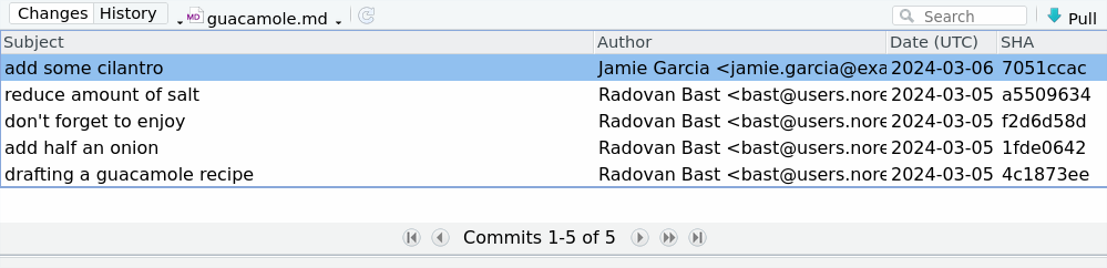 How many changes did the Guacamole recipe receive (you find it under “sides”)? Try to click on some of the commits to see what changed. (Hint: “History” in the view of a single file)