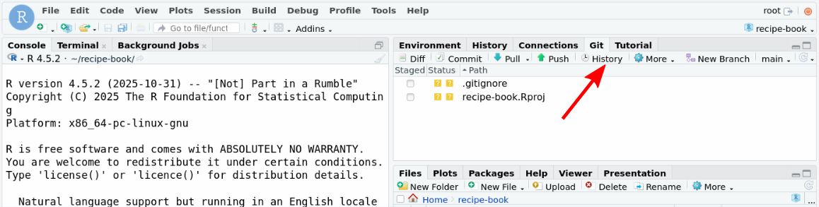 git clone https://github.com/USER/recipe-book, whereUSERis your username. You might need to use a SSH clone command instead of HTTPS, depending on your setup.Change to that directory: